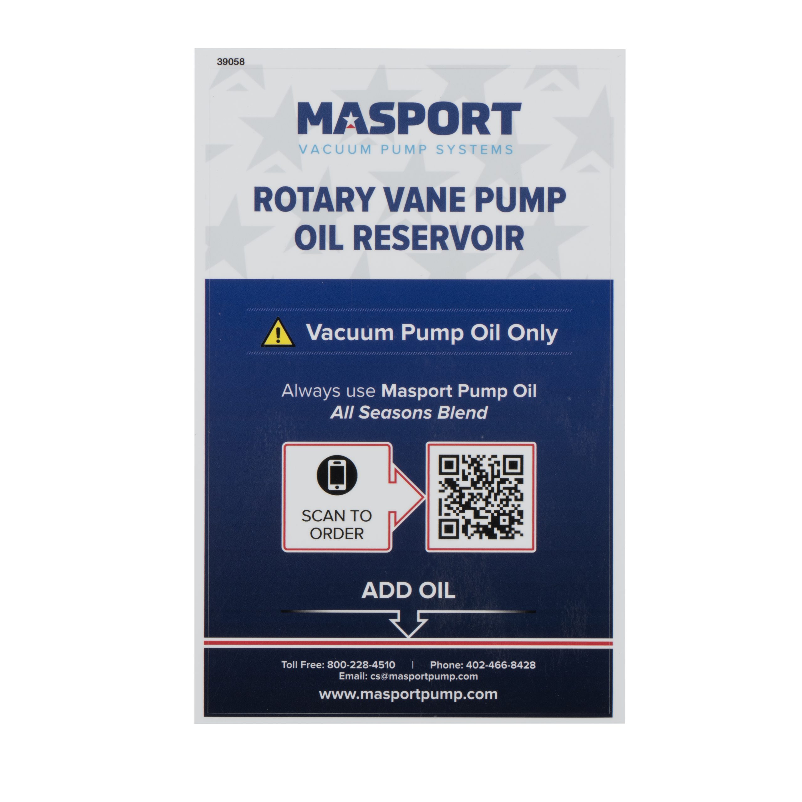 5 QT steel Oil Reservoir Sticker is available through Masport. Select “Find Resources” for product questions.